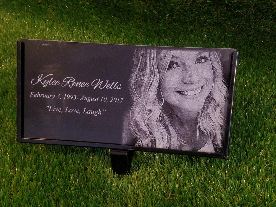 Our high quality Photo Marker is made of solid polished black granite and is a perfect lasting memorial of your loved one. Almost anything can be engraved on the marker, including photos, text, poems, or anything else that would add a personal touch.