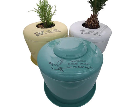 The Living Urn® Indoors / Patio provides families with a way to grow a beautiful living memory tree or houseplant indoors, or on a patio, from our attractive, proprietary urn holding the cremated remains of a loved one. The urn itself is made from sleek porcelain, comes in three colors, and measures approximately 9” high and 9” in diameter. Inside is a special compartment to hold your loved one's cremated remains, our proprietary growing system of interlocking ring trays, and accessories to assist in the planting process.