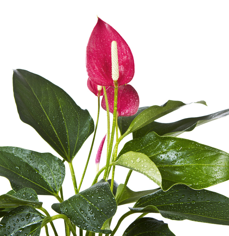 Flamingo Flower – a hardy plant that can grow and thrive for years. They have large, bright heart shaped flower bracts that typically begin to bloom in early February, just before Valentines Day!  Keep this plant out of direct sunlight and it will grow and thrive for many years to come!
